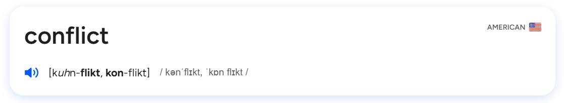 Some words are stressed differently depending on the part of speech role they are fulfilling in a sentence. As a verb, or action word, ‘conflict’ is stressed on the second syllable, but as a noun, the first syllable is stressed.